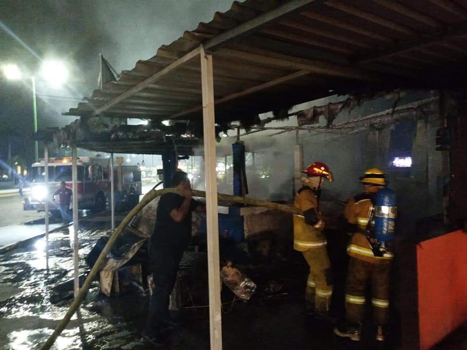 Personal del Cuerpo de Bomberos con apoyo de Protección Civil logró controlar el fuego que lamentablemente redujo a cenizas los locales.