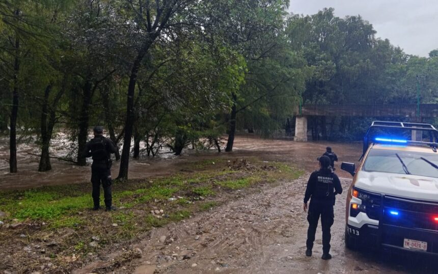 Los elementos constataron que el agua del río había rebasado los límites de seguridad, por lo que se procedió a colocar cinta de precaución y emitir recomendaciones a los habitantes que se encontraban en las zonas afectadas.