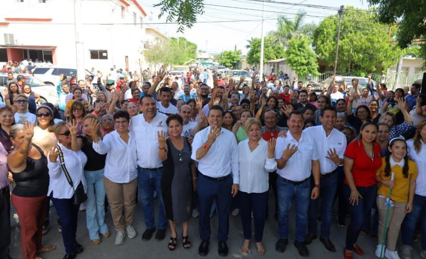 CIUDAD VICTORIA. —Para cumplir el compromiso de pavimentación con vecinos de la colonia Tamaulipas, el alcalde de Victoria Eduardo Gattás Báez acudió, en compañía de integrantes del Cabildo, a la calle José Vasconcelos para hacer entrega de la obra.