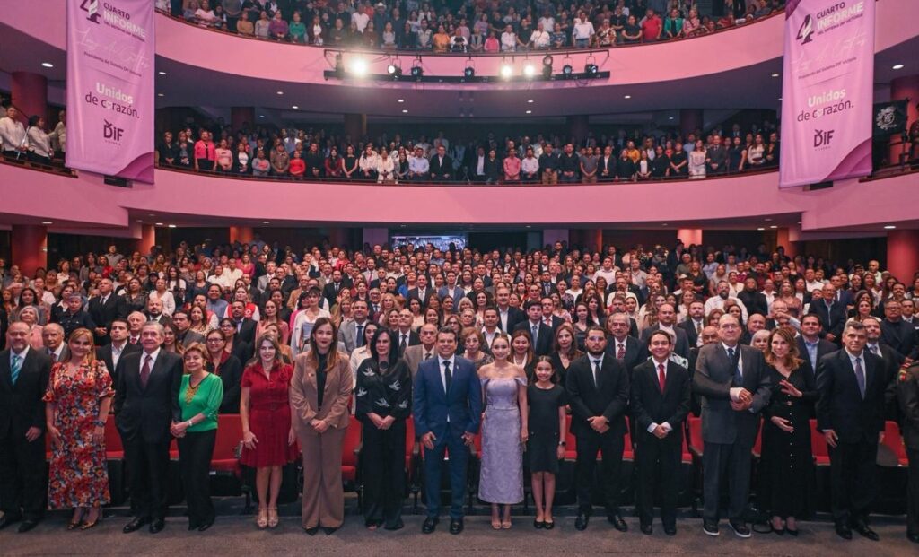 CIUDAD VICTORIA. —La presidenta del Sistema DIF Victoria Lucy de Gattás, en compañía de su esposo, el presidente municipal Eduardo Gattás Báez, presentó su cuarto informe de actividades, en el que reiteró el compromiso de seguir trabajando unidos de corazón por el bienestar de las familias victorenses.