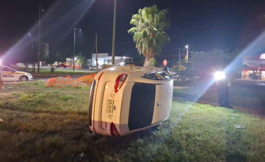 Al querer cruzar los carriles de circulación de sur a norte del bulevar Fidel Velázquez, impacta en el lateral izquierdo a un vehículo de la marca Ford donde viajaban tres personas del sexo masculino, tras el impacto a la unidad, pierde el control quedando volcado dentro del camellón separador de carriles.