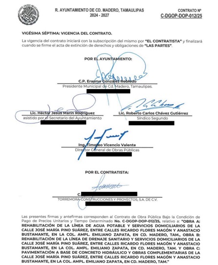 De acuerdo con la información obtenida por el periódico digital “La Expresión” el gobierno de Ciudad Madero entregó contratos de obra pública a la empresa “Torremora, Construcciones y Proyectos”.