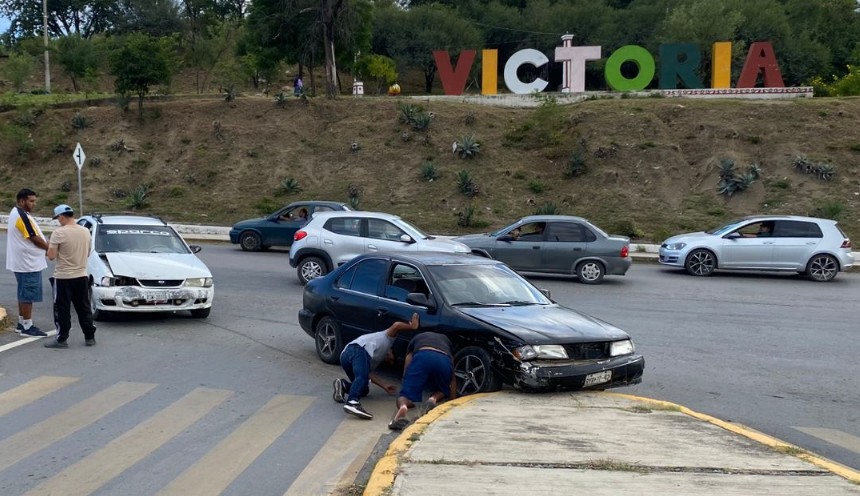 CIUDAD VICTORIA. —Daños materiales de consideración, fue saldo que dejó un choque de crucero registrado la tarde de este lunes en el ya conocido lugar frente a las letras de Victoria.