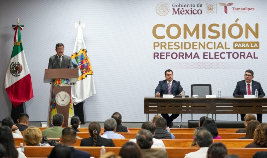 CIUDAD VICTORIA. —Sumados a la iniciativa del Gobierno de México, a través de la Comisión Presidencial para la Reforma Electoral, el Gobierno del Estado y la Universidad Autónoma de Tamaulipas (UAT) pusieron en marcha los Diálogos sobre la Reforma Electoral, un ejercicio académico y ciudadano que tiene como propósito fomentar la exposición, reflexión crítica y el análisis plural en torno a los retos, alcances y perspectivas del sistema democrático nacional.