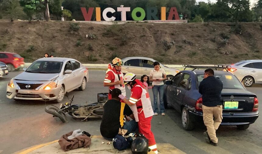 CIUDAD VICTORIA. —Un motociclista requirió ser valorado debido a las lesiones que presentaba tras participar en un accidente vial donde se ven involucradas tres unidades.