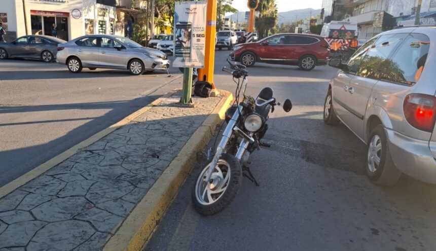 CIUDAD VICTORIA. —Con lesiones leves resultó un motociclista después de participar en un choque de crucero registrado la tarde de este jueves en la colonia San Francisco de esta capital.
