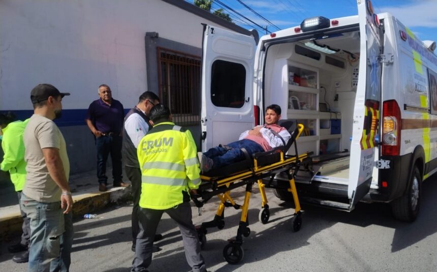 Paramédicos del Centro Regulador de Urgencias Médicas (CRUM) valoraron a los tripulantes de la moto decidiendo el traslado de uno de ellos a la clínica hospital del IMSS.