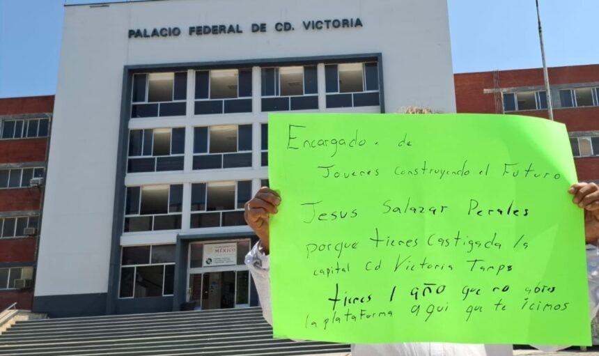 CIUDAD VICTORIA. —La mañana de este miércoles, varios jóvenes acudieron a las oficinas del programa Jóvenes Construyendo el Futuro para exigir una explicación sobre la falta de apertura de la plataforma en lo que va del 2026.