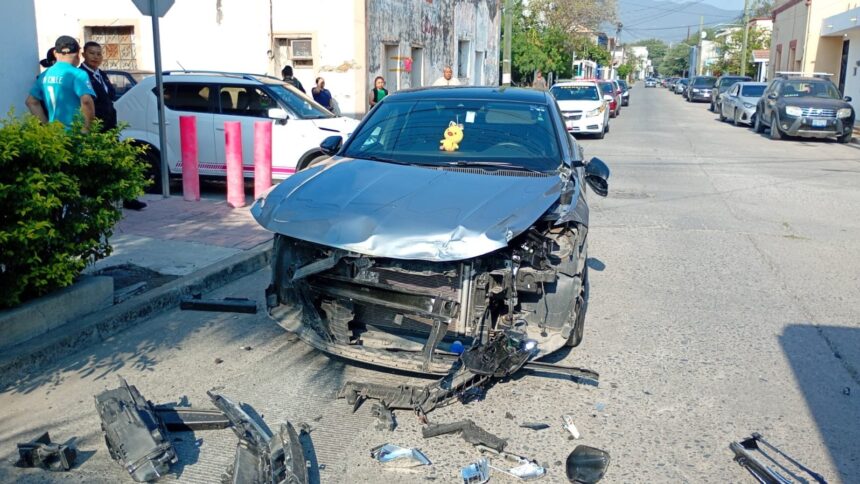 El percance tuvo lugar en el cruce de la calle Tres con Guerrero, donde un vehículo Volkswagen Jetta colisionó contra un microbús del transporte público y una camioneta que se encontraba estacionada.
