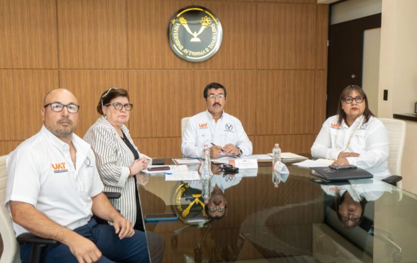 CIUDAD VICTORIA. —La Universidad Autónoma de Tamaulipas fortaleció su proyección internacional y cooperación estratégica en innovación educativa, durante la reunión de trabajo que presidió el rector Dámaso Anaya Alvarado para la implementación del Manifiesto Institucional de Inteligencia Artificial de la UAT, con la participación de autoridades académicas de la Universidad Sharda, de la India.