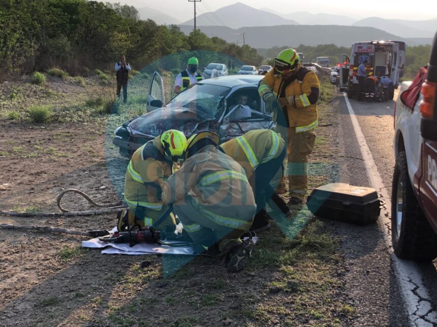 Ciudad Victoria, Tamaulipas.– Un fuerte accidente carretero registrado la tarde de este viernes en el kilómetro 208 de la carretera Victoria–Mante dejó como saldo dos personas lesionadas, una de ellas atrapada entre los restos del vehículo en el que viajaba.