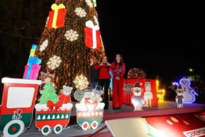 Enciende Carmen Lilia pino navideño e inaugura vivero con gigantes y 200 mil luces